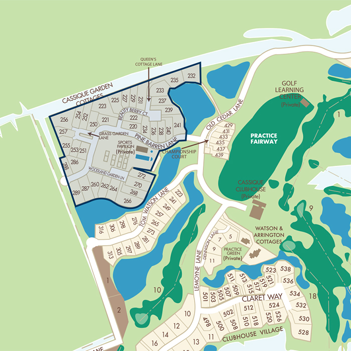 Reflecting the British Arts and Crafts-style architecture of Cassique, the single-level island cottages also showcase the Lowcountry’s wealth of natural beauty with courtyards reminiscent of Europe and the historic brick gardens of downtown Charleston. Delicate rose gardens, brownstone walks, manicured hedges, rolling fairways, and native cedars make strolling the lanes a delight.