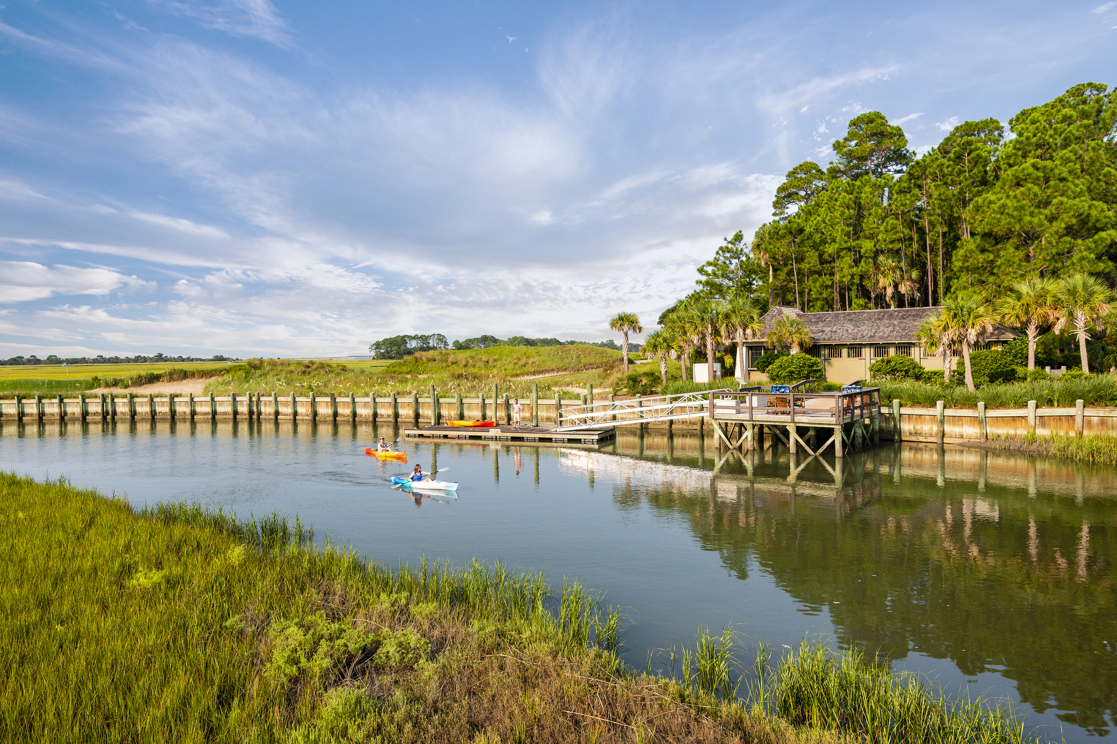 The Kiawah Island Club serves as the heartbeat to a wonderfully close-knit community. As Club Members, your family will enjoy access to all Club amenities, particularly so within Cassique: the Tom Watson-designed Cassique golf course, the Tom Colicchio-inspired menu of Voysey’s in the clubhouse, the kayak dock & boathouse (pictured above) just across the causeway, the state-of-the-art Sports Pavilion, the Tom Fazio-designed River Course and its clubhouse, the riverside Sasanqua Spa, The Beach Club, Marsh House, Shooting Club clay pigeon course, BizHub, and all the recreation, entertainment, and dining each facility offers… plus, of course, ten miles of continuous Atlantic beach.