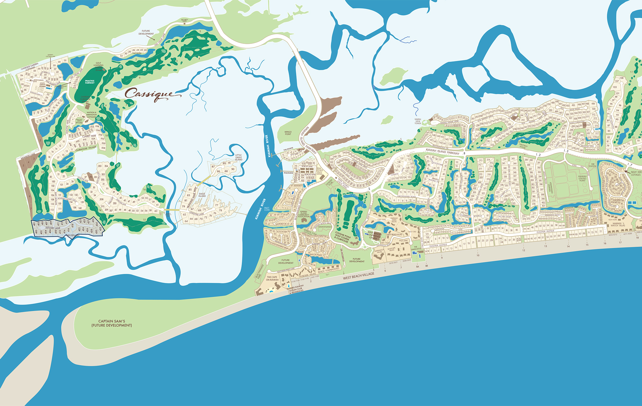 North-facing homesites showcase the calm waters of the lagoon and stunning views of pristine forestry to the west and the famed Cassique course to the east.