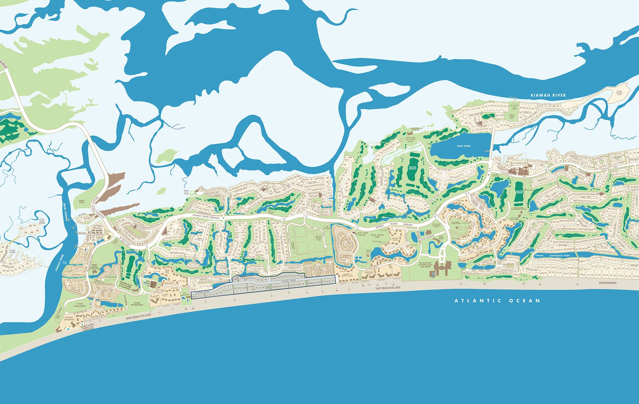 This exquisite and established neighborhood offers beautiful tree-lined streets and is bordered by natural dunes, an uncrowded beach, and the Atlantic Ocean. Residents here enjoy enviable access to the ocean, to Kiawah miles of paved bike and nature trails, 5 championship golf courses, Night Heron Park, The Sanctuary Hotel, Freshfields Village, and historic downtown Charleston.