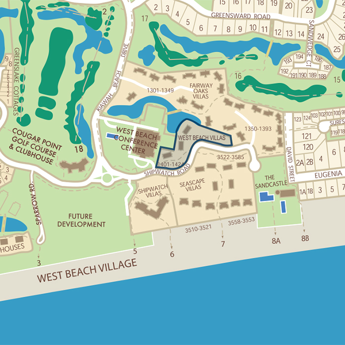 Within walking distance to Kiawah’s 10-mile beach, these cozy one bedroom, one bath villas enjoy tennis court views with lots of activity. West Beach Villas feature fully equipped galley style kitchens, combined dining and living areas, spacious bedrooms with walk-in closets, and generously sized screened porches. Units on level two enjoy vaulted ceilings.