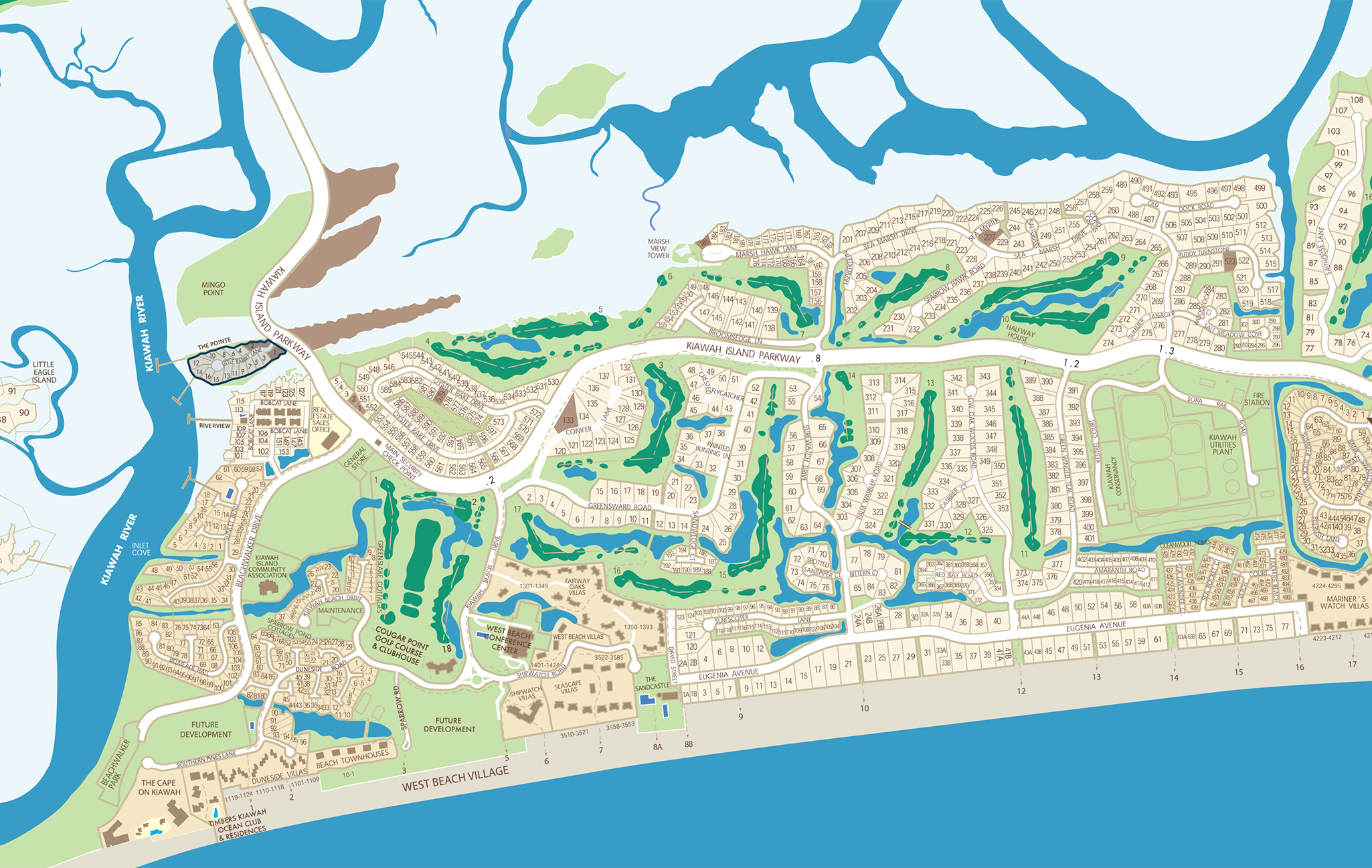 Surrounded by water—the Kiawah River, tidal creeks, and Atlantic Ocean just beyond—The Pointe offers both tucked-away island living and convenient access to Kiawah’s most coveted amenities. A marshside walking and bicycle trail leads in one direction to the boutique shops, services, and dining options of nearby Freshfields Village, and in the other direction to Kiawah’s ten-mile Atlantic beach. Along the way, swing by the general store or Beachwalker Park. For Kiawah Island Club Members, too, Cassique’s world-class amenities are just across the river: the Tom Watson-designed golf course, Tom Colicchio-inspired dining at Voysey’s, the private Club boathouse, and the state-of-the-art Sports Pavilion, pool, and tennis courts.