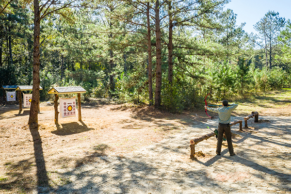 Welcome to 10 stations of challenging fun for all ages. Here, an assortment of simulated animal targets are presented from ground level and elevated stands along the walking course. Guests feeling rusty may utilize three individually distanced practice targets before heading out on the hunt.