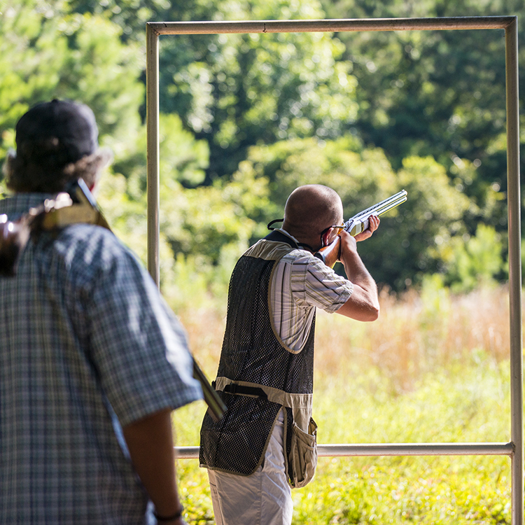 Often described as “golf with a shotgun,” sporting clays most closely resemble field shooting. The Sporting Club’s 10-station course features three traps at each station and a new challenge presented at each. While some clays might be launched from behind bushes, others will bound across the grass, simulating a rabbit on the run.