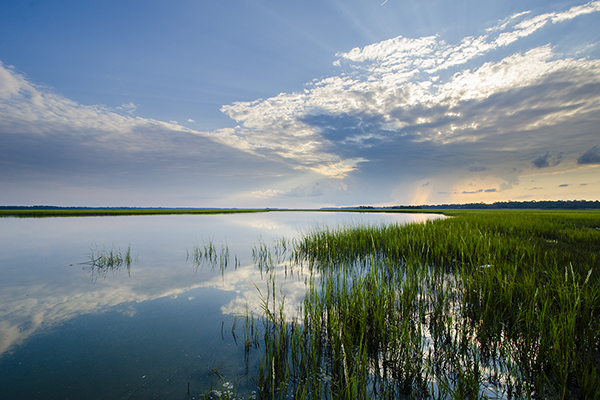 Kiawah shorelines comprise some of the best beaches near Charleston. Kiawah beaches’ rare east-west orientation allows beachgoers to enjoy both gold-tinted sunrise and scarlet-hued sunset from the exact same spot on the sand. Here, families come together for sandcastle building, bike riding, and kite flying. Impromptu volleyball games are initiated throughout the day, and lounge rentals provide spectators a comfortable place to cheer participants on or thrill adventure seekers taking to the sea. Swimming, surfing, and stand-up paddleboarding fill afternoons near the shore while boating, parasailing, and deep-sea fishing unfold across deeper waters.