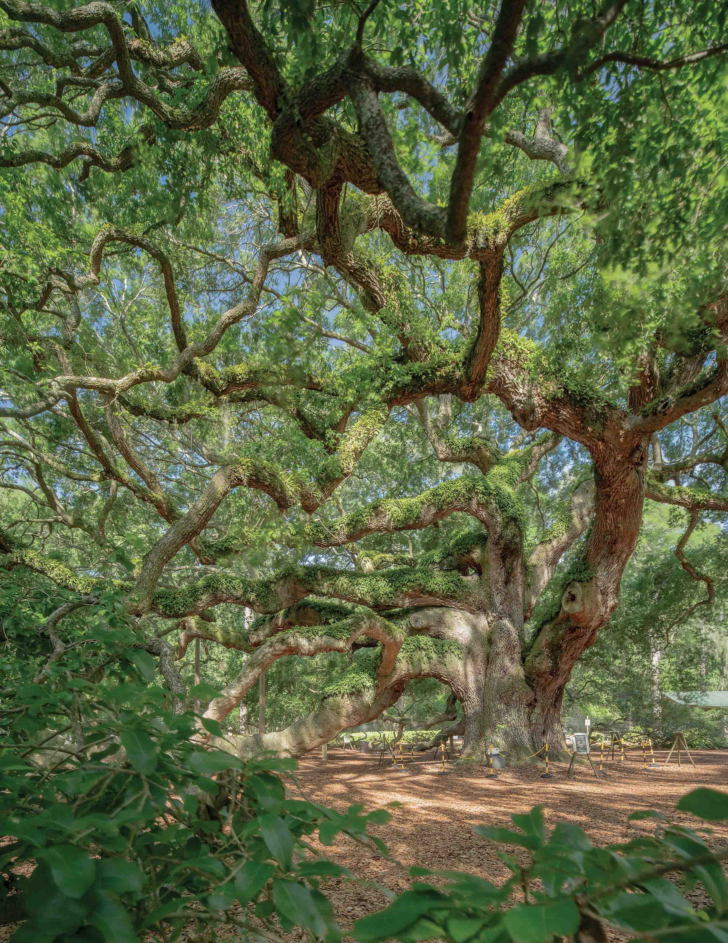 The Angel Oak stands over six stories high and shades an area of over seventeen thousand feet. This great tree transcends time. It is simultaneously a relic of the Old World—far predating European arrival—while also very much in the prime of its life.
