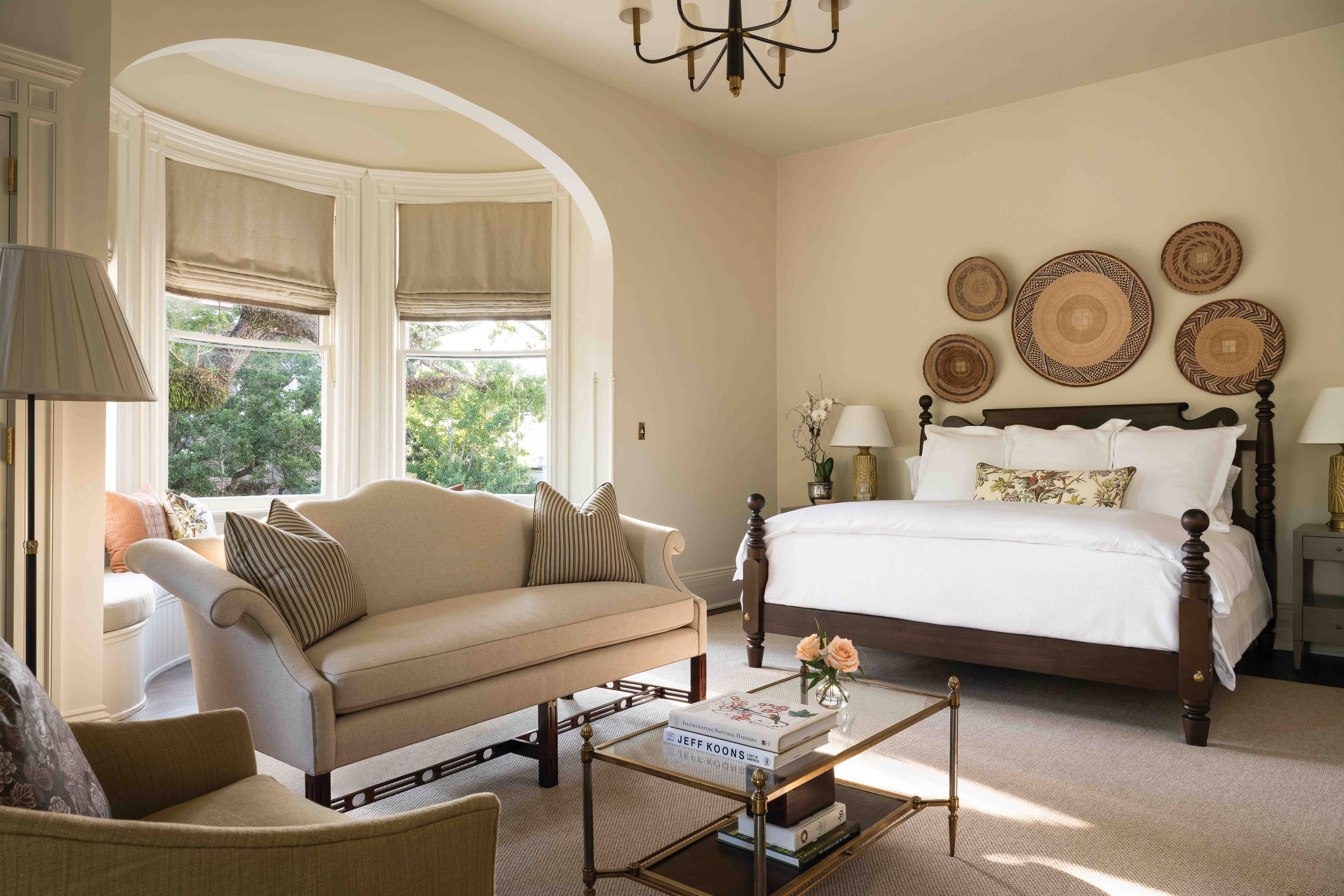 Over the course of a two-year renovation, Fava and the Tupper team meticulously retained the property’s historical integrity while incorporating completely new mechanical, electrical, and plumbing systems. On the main floor, the restored main dining room features one of the Tiffany windows, while adjacent is a fully renovated kitchen with custom millwork and professional grade appliances. A Kiawah Island Club chef creates a lavish breakfast buffet daily as well as other delicious refreshments and treats exclusively for guests staying at the Inn. In the main hall, where original carved English oak panels and a grand staircase were refurbished, the stairwell huddles over a quaint bricked reading nook behind the reception. Upstairs, a gracious second-floor sitting room, complete with a fully stocked, complimentary “comfort station” featuring wines and spirits, such as a curated Madeira program authentic to the Inn’s 1890s era, opens onto a breezy piazza with expansive views over White Point Garden and Charleston Harbor. Guests can relax with a beverage, or enjoy tea or coffee and conversation on the Inn’s original vintage wicker.