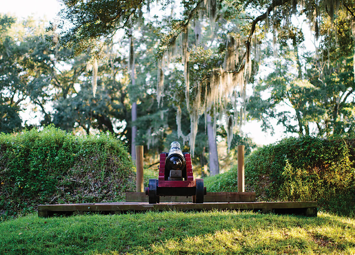 In April 1670 the English established “Charles Towne” at this Kiawah tribal village at Albemarle Point, before relocating to where modern Charleston is today. A demonstration garden along the history trail features examples of early crops the settlers attempted to farm here, such as sugar cane and indigo. (Most of the early experiments failed and it would be twenty years before the settlers discovered the profitability of cultivating rice.) Replicas of original structures, such as slave dwellings and fortification walls equipped with cannons, add an element of imagination, culminating in the recreation of a seventeenth-century trading vessel that would have brought raw materials, enslaved people, and news from home to the colony’s original settlers.