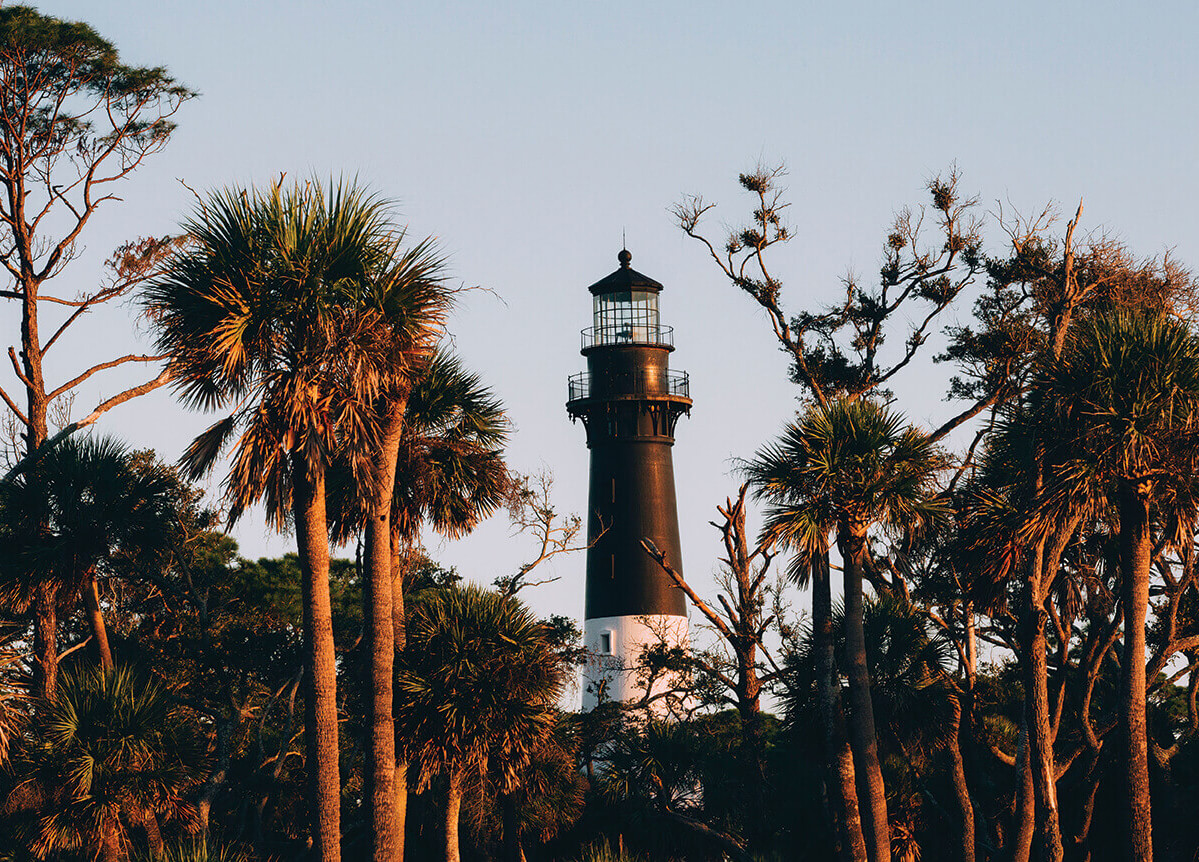 Perhaps the most iconic image of Hunting Island, the 5,000-acre barrier island near Beaufort, is the 163-year-old black-and-white painted lighthouse. Perched on a grassy knoll, it is the only publicly accessible lighthouse in the state of South Carolina, and it has been uniquely engineered to survive here: It was built to be easily dismantled, moved, and reassembled as the barrier island erodes. (It has already been moved once, in 1889, more than a mile inland.)