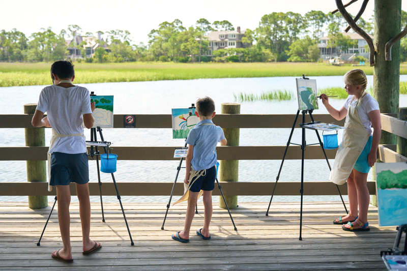 Nature affects the mind of a child in dramatic ways, enhancing physical, emotional, and cognitive skills. And art—painting, writing, dramatic play—is like the other half of the whole—fostering emotional development and identity. to create art in nature? Now that is a worthwhile endeavor. On a breezy morning in late June, Charleston-based artist Sheryl Stalnaker taught a plein air painting workshop to six Kiawah kids. The experience was magic.
