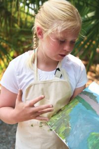 Nature affects the mind of a child in dramatic ways, enhancing physical, emotional, and cognitive skills. And art—painting, writing, dramatic play—is like the other half of the whole—fostering emotional development and identity. to create art in nature? Now that is a worthwhile endeavor. On a breezy morning in late June, Charleston-based artist Sheryl Stalnaker taught a plein air painting workshop to six Kiawah kids. The experience was magic.