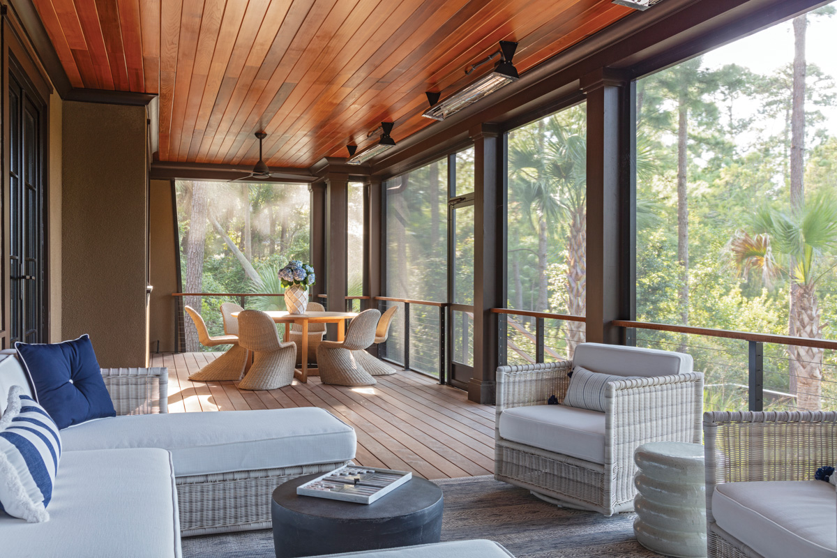 “This particular homesite was unique in that when you’re on the course, you see it when you’re looking toward the green,” says Amanda Mole, Chief of Architecture and Design for Kiawah Partners. “This put a unique burden on design colors and landscapes because our goal at Cassique is that the home is a silhouette. This house is a focal point as you’re playing the course, so we challenged the team with making sure the outdoor living was more subtle.”
