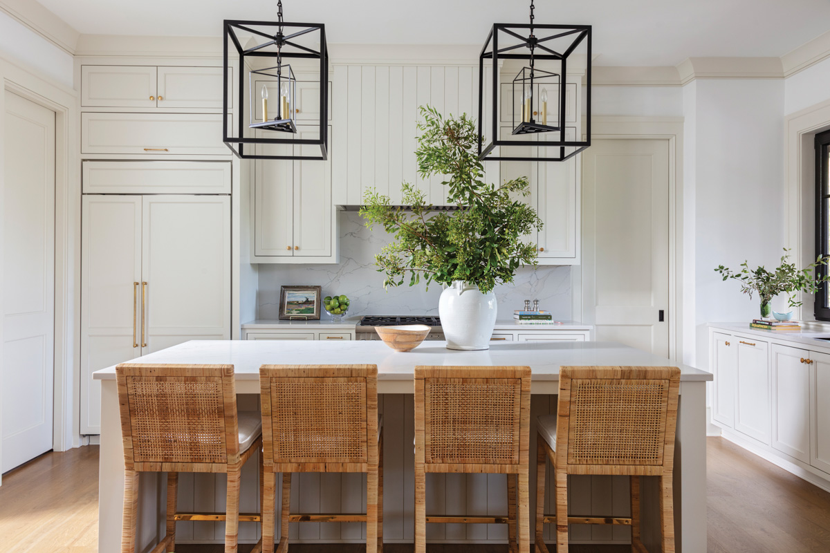 Their vision extended to every detail—from Scalamandré’s Kersti wallpaper in the bar to Currey & Company’s Tirrell chandelier in the primary suite. “It’s much easier when you have the homeowner involved because you can envision how they live in that space,” Molster says. “And the built-for-sale program is a great way for homebuyers to have a starting point. Approaching an empty lot is pretty intimidating, and having a sense of things before they begin is really helpful.”