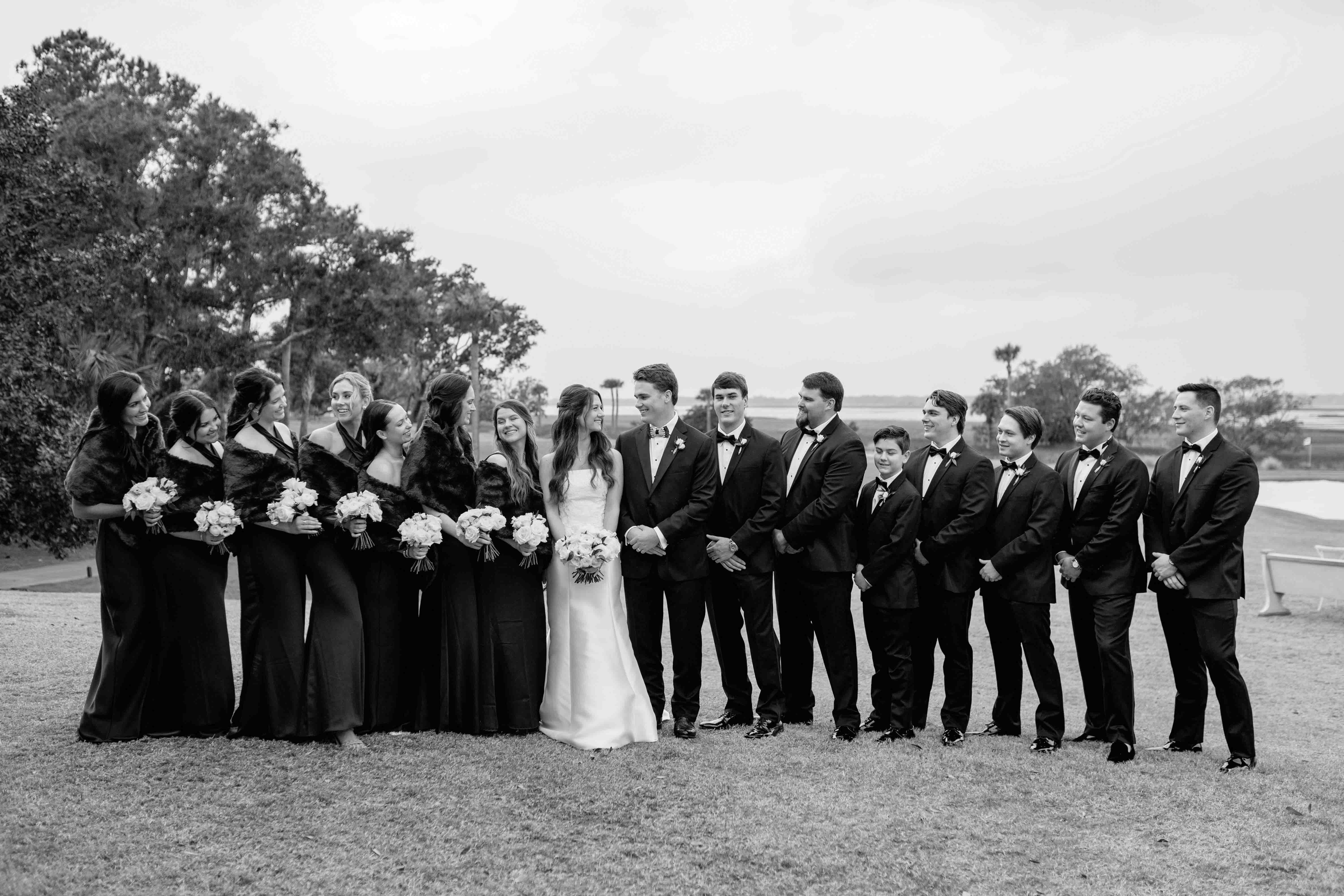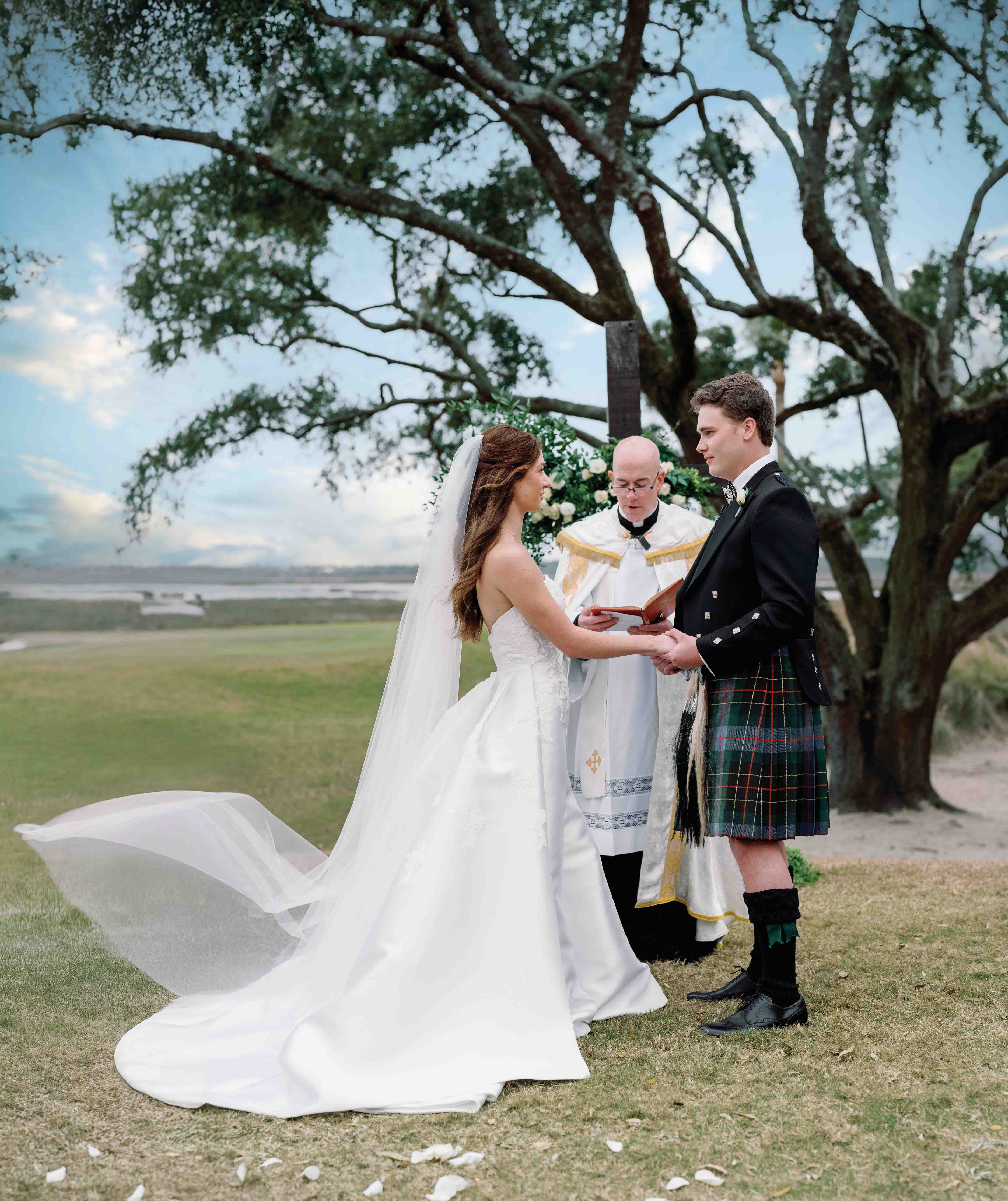 It feels fitting that Grant and Bridget’s summer love culminated in a winter wedding, the seasons of their romance like two halves of a whole. “I had watched weddings on Kiawah my whole life,” says Bridget. “I knew I wanted to get married here.” The couple didn’t even entertain other options. They booked the next available date—December 16, 2023, at the River Course clubhouse.