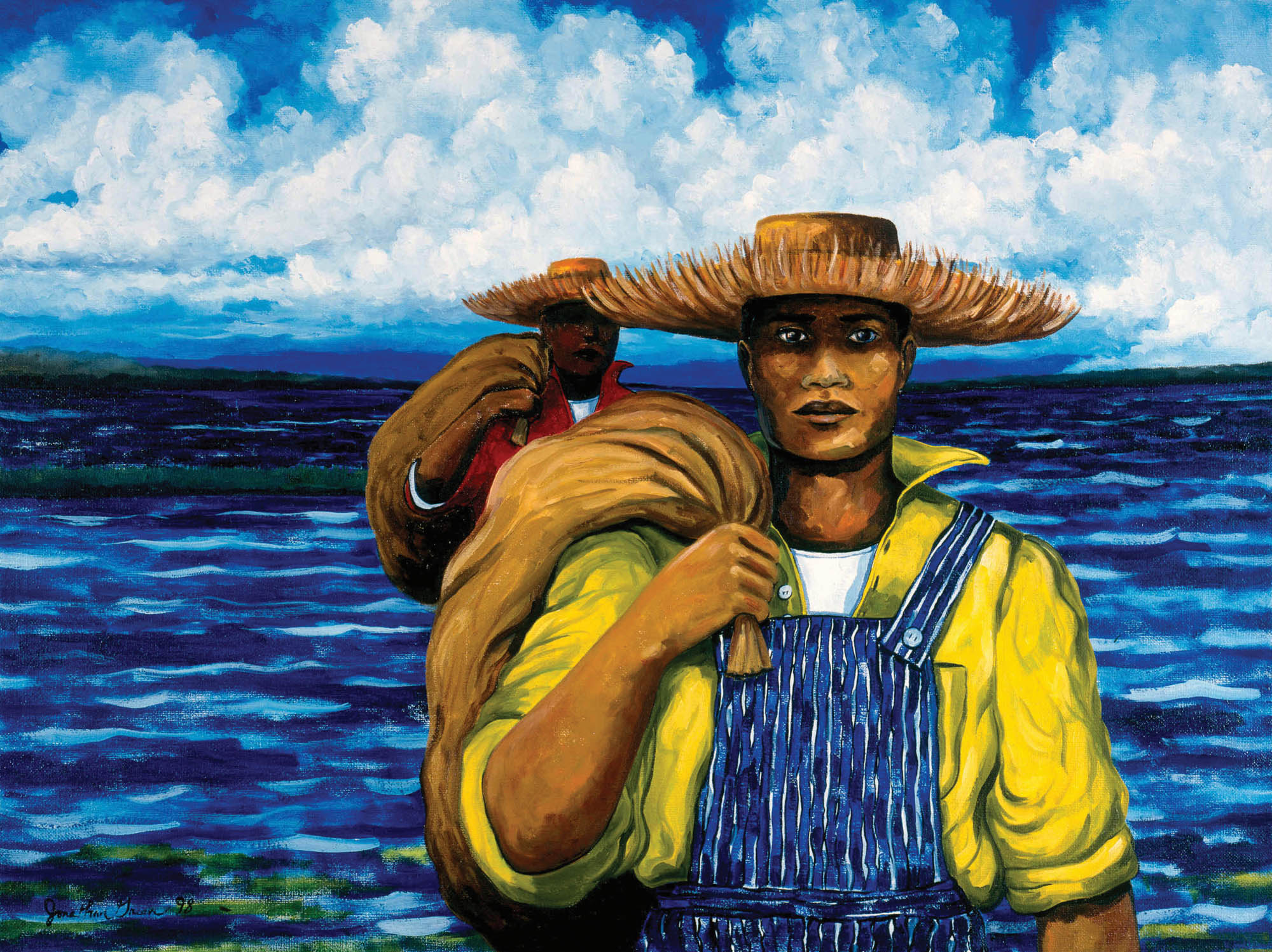 His two books, Gullah Images and Gullah Spirit: The Art of Jonathan Green—both published by the University of South Carolina Press—are testimony to his singular vision and intention: to capture and honor his birthright. Or in the words of the legendary Pat Conroy, Green’s paintings are saturated with the “mythic grace and nameless grandeur” of the Gullah culture. As his numerous awards (among them, the NAACP’s Key of Life Award and South Carolina’s highest honor, The Order of the Palmetto) and international renown suggests, he is to canvas what Miles Davis is to music, what Toni Morrison or James Baldwin is to prose, what Alvin Alley is to dance. But you’d never know it by talking with him.