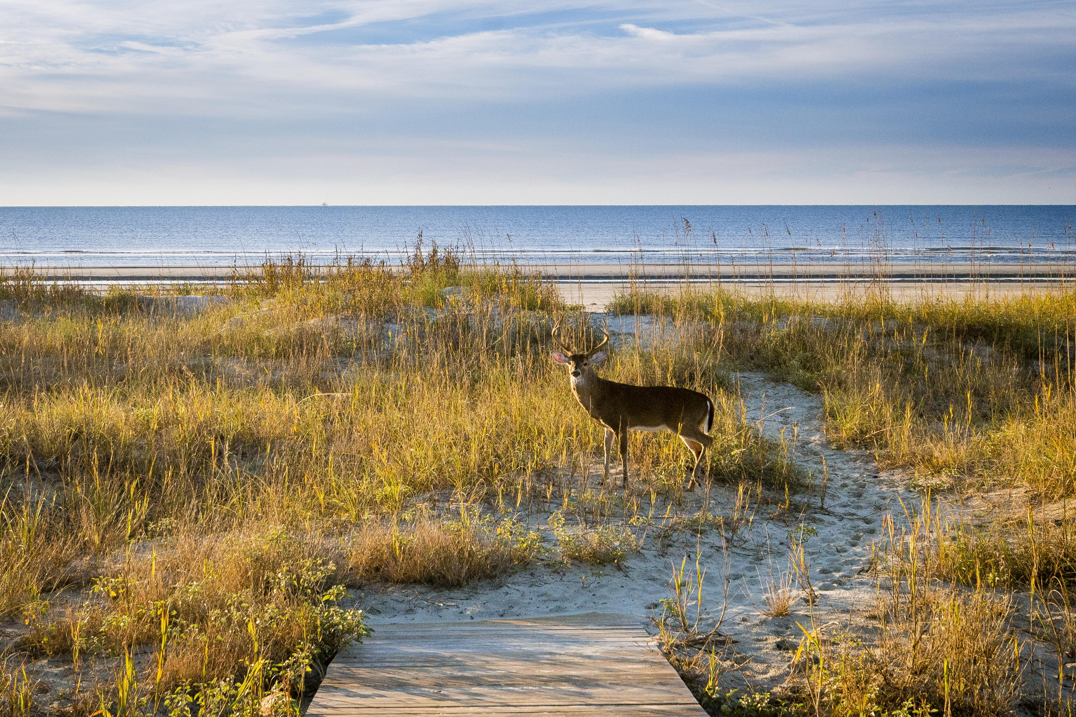 While you’re relaxing on the beach or paddling through the marshlands, you will more than likely come across Kiawah’s local species while exploring the island. You might see white-tailed deer frolicking in the dunes, a family of dolphins diving in the Kiawah River, or an alligator slithering through low waters. Wildlife sightings are not unusual, and they are what give Kiawah Island a unique feeling compared to other beach vacation spots. If you would like to be more purposeful in exploring the wildlife of Kiawah Island, consider registering for wildlife tours led by a staff of animal experts. Kiawah provides a variety of choices including alligator adventures, dolphin excursions, back island birding tours, or boat rides through the marshes and sea.