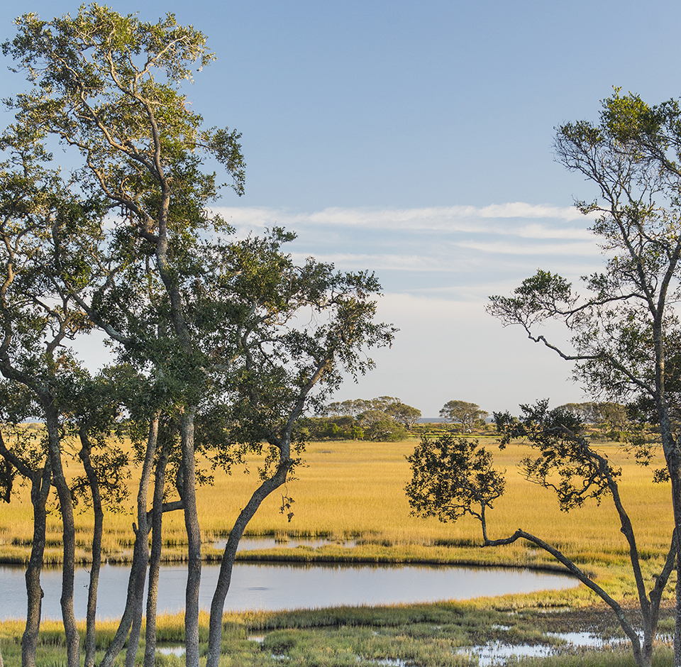 Wake up to the sound of rustling leaves while sipping coffee on your back porch. Pack a picnic lunch and explore winding trails, pathways, and ponds as southwesterly trade winds keep you cool. Finish up by taking an evening stroll along the marsh with your dog as the sun sets gently over ancient oak trees.